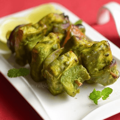 Cubes of paneer marinated in a rich green chutney with fresh coriander, mint, ginger, garlic; and yogurt.