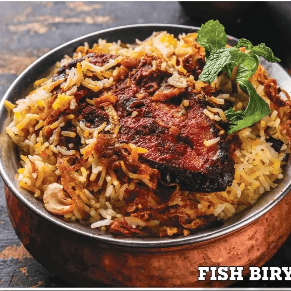Tender fish cooked with aromatic basmati rice and a complex blend of spices. Served with chef's special appetizer & dessert