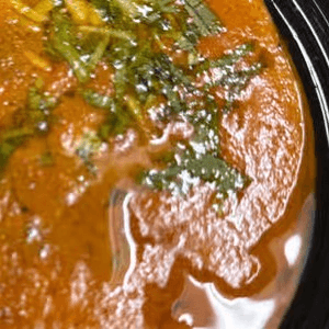 Boneless chicken simmered in a rich and buttery tomato cream sauce with fenugreek. Served with plain white rice