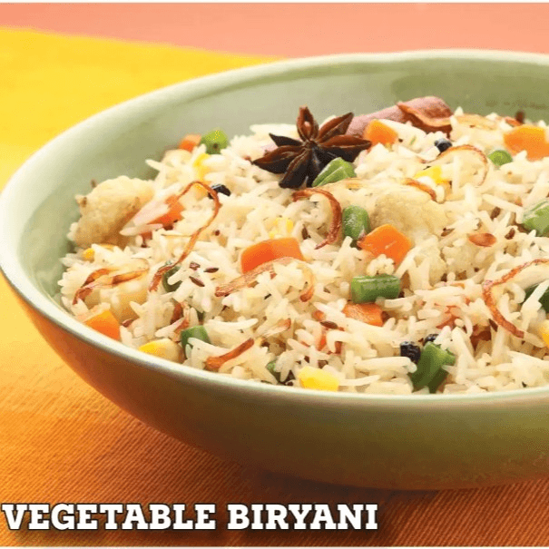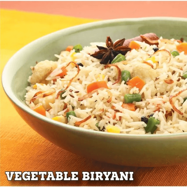 Seasonal vegetables cooked with herbs and layered with saffron-infused rice, dum - cooked to perfection.