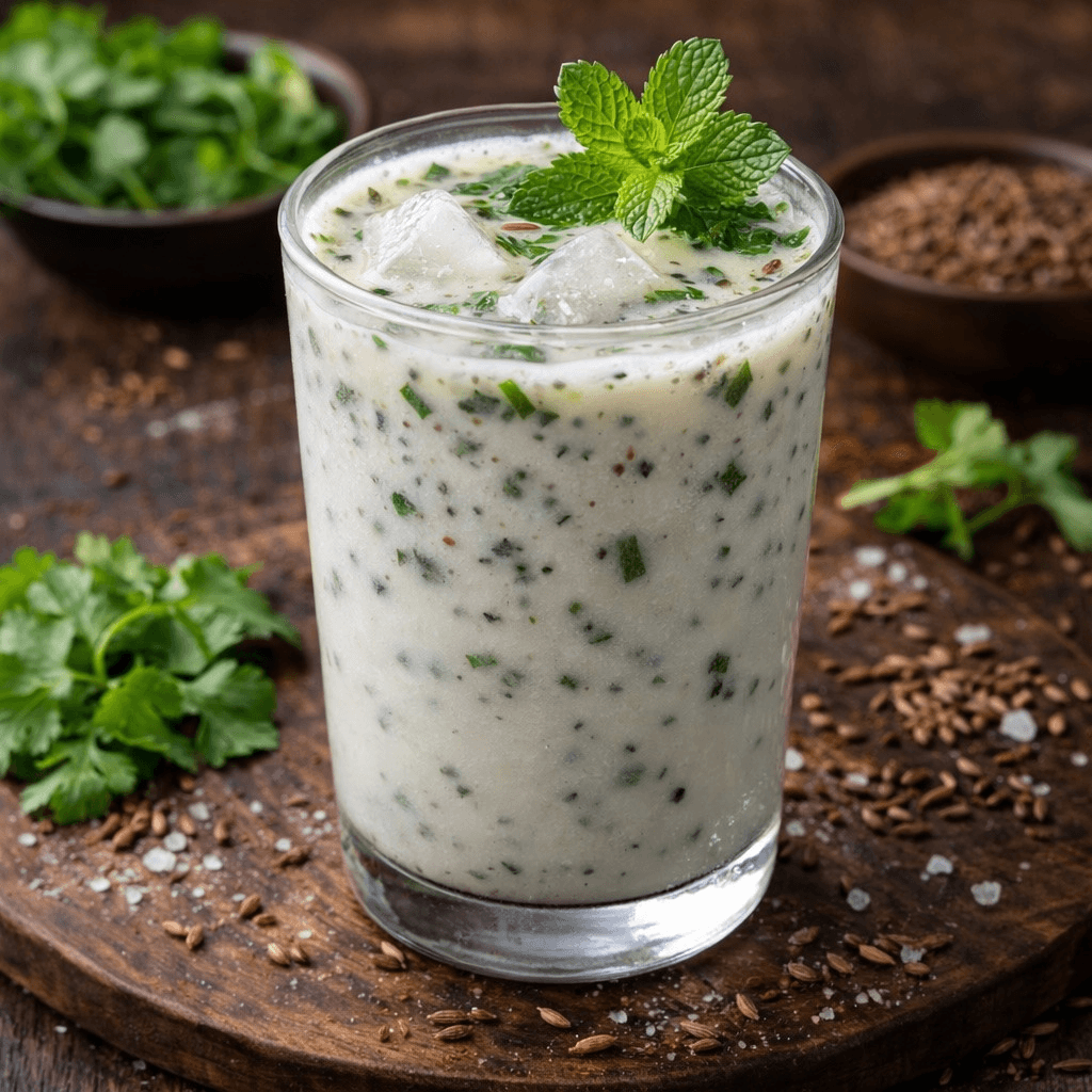 A cool, spiced buttermilk drink blended with herbs, roasted cumin & salt. Served Cold.