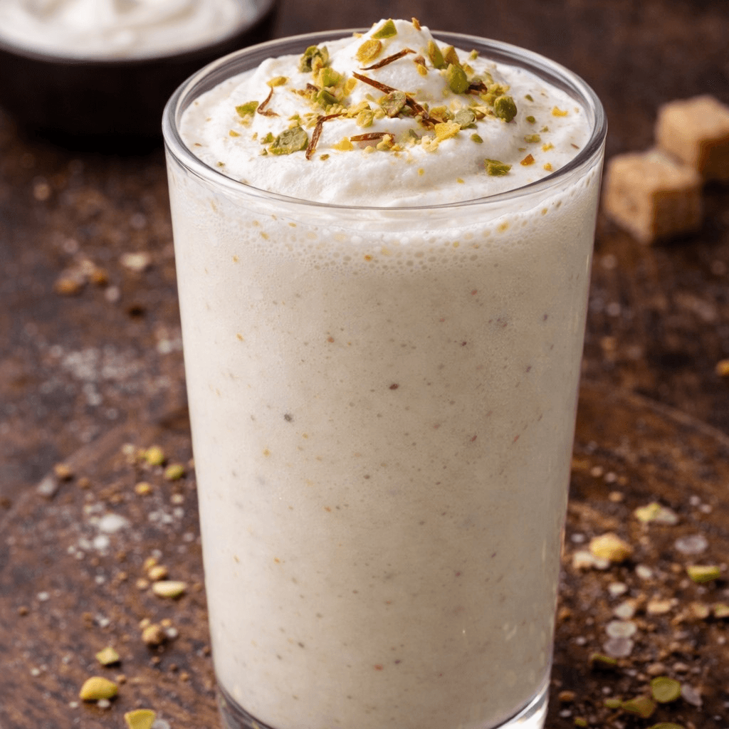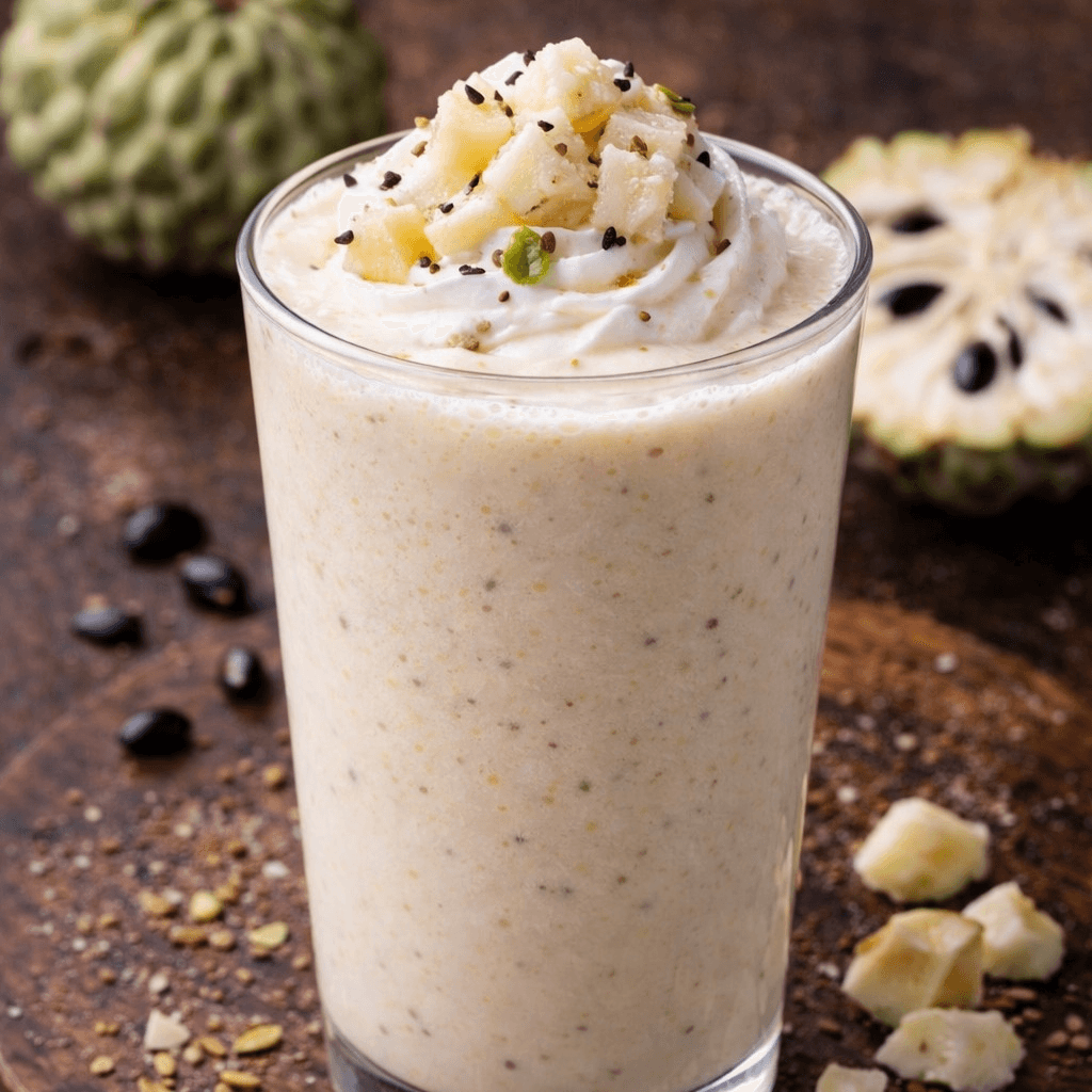 A creamy and sweet milkshake made from the pulp of the sitafal fruit- smooth and sweet, tropical flavor.