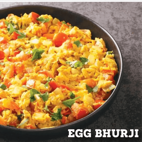 Spiced scrambled eggs sauteed with onions, tomatoes, green chilies, and herbs. Served with plain white rice