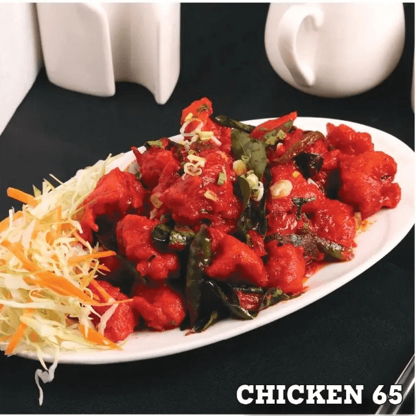 Crispy dumplings tossed in a fiery 65 masala - a fusion twist on Indian and Indo-Chinese.