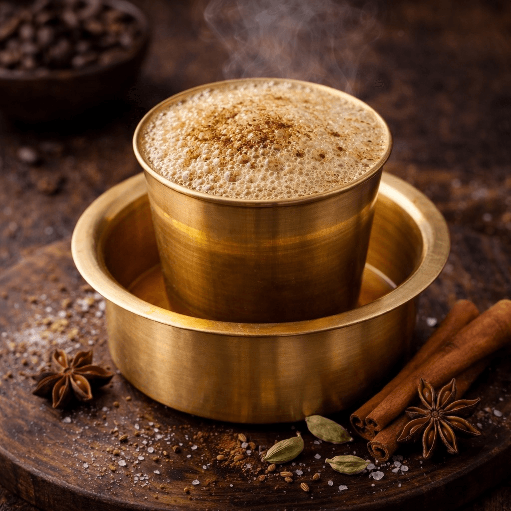 A South Indian filter coffee with bold flavors and creamy froth. Served Hot