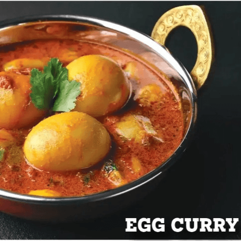 Boiled eggs simmered in a flavorful onion-tomato gravy with traditional Indian spices. Served with plain white rice