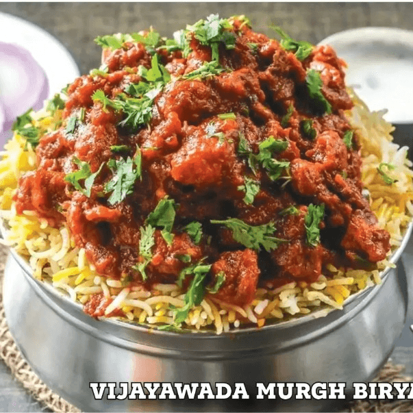 Spicy Andhra-style boneless chicken biryani with bold flavors and fiery masala. Served with chef's special appetizer & dessert