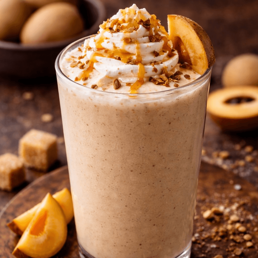 A creamy, sweet milkshake made from the tropical fruit chikoo - malty, caramel-like flavor.