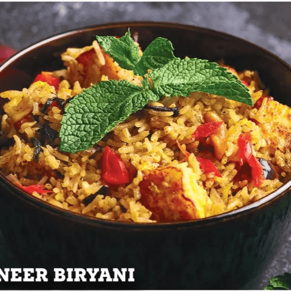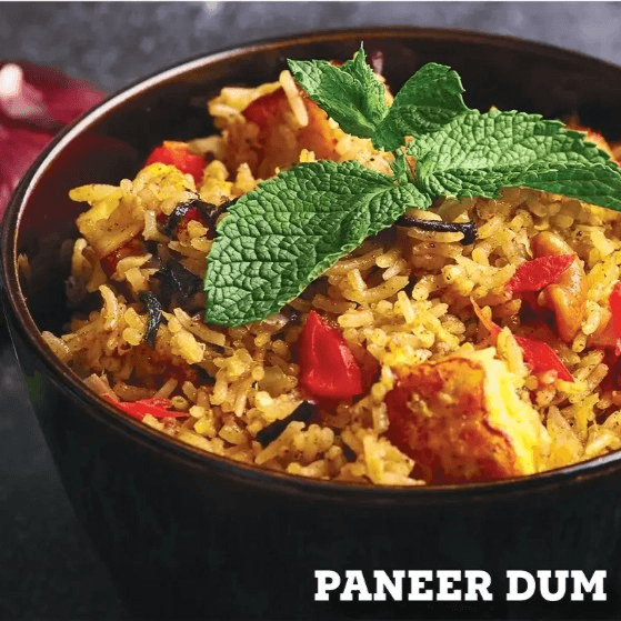 Soft paneer cubes marinated in spices and cooked with biryani rice in sealed pot style.