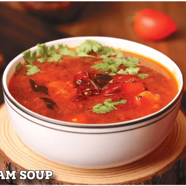 Spicy South Indian tamarind broth with black pepper and curry leaves.