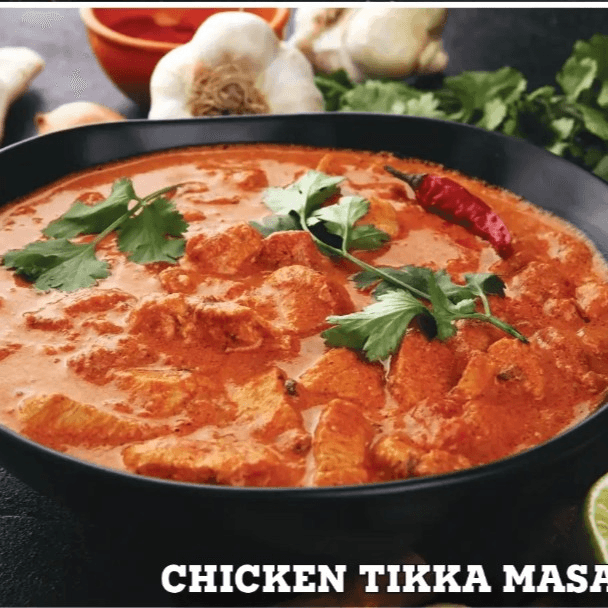 Char-grilled chicken tikka cooked in a creamy tomato-based curry with aromatic spices. Served with plain white rice