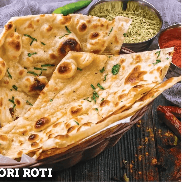 Whole wheat roti baked in the tandoor- earthy and wholesome.