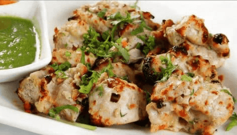 Boneless. Boneless chicken pieces marinated in yogurt and spices, skewered and cooked to perfection in the tandoor.