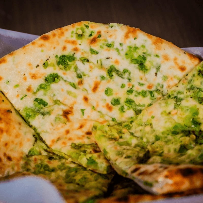 Spicy broccoli-stuffed naan seasoned with chilies.